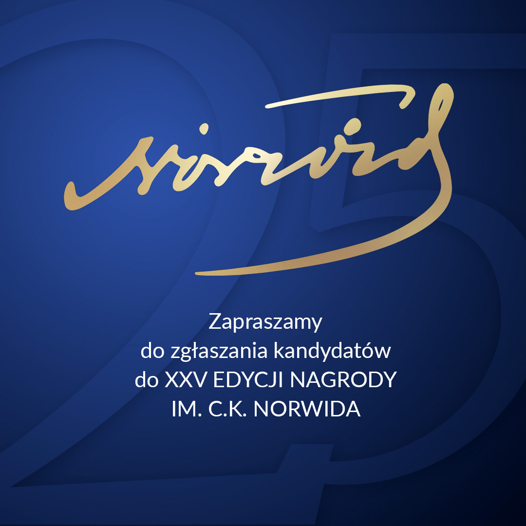 Trwa nabór wniosków do jubileuszowej edycji Nagrody Samorządu Województwa Mazowieckiego im. Cypriana Kamila Norwida za wybitne dzieło lub kreację artystyczną powstałe w 2025 r. Zgłoś swojego faworyta lub faworytkę! Termin składania wniosków upływa 27 kwietnia br.
